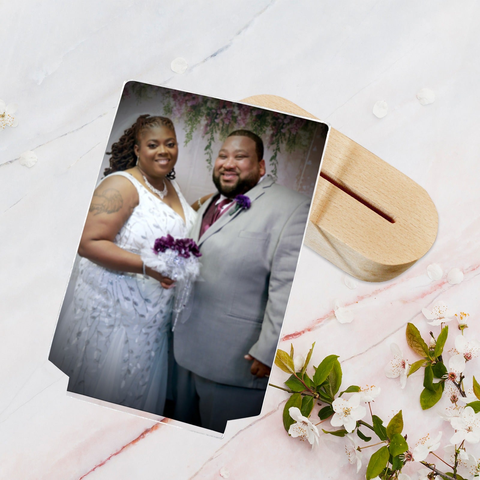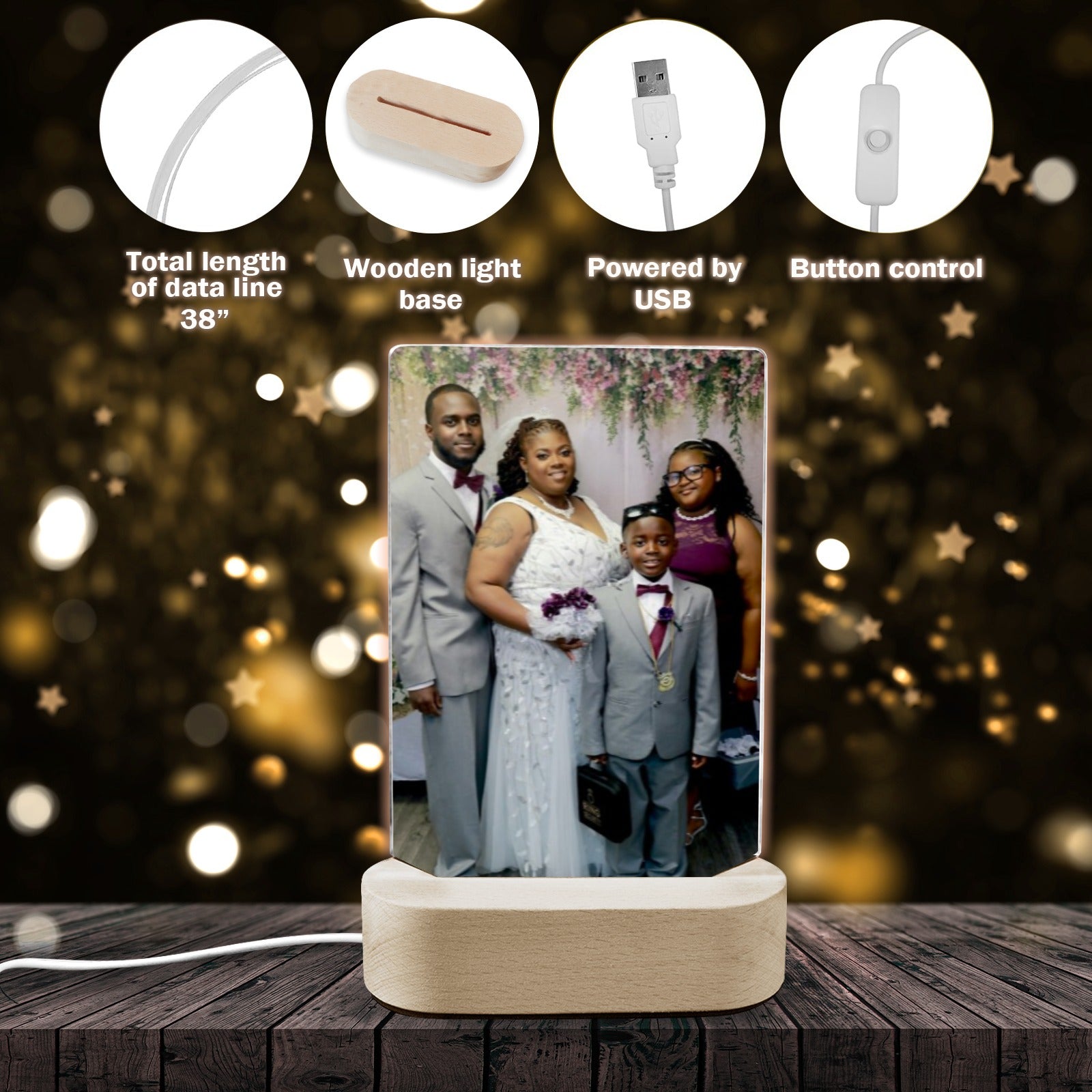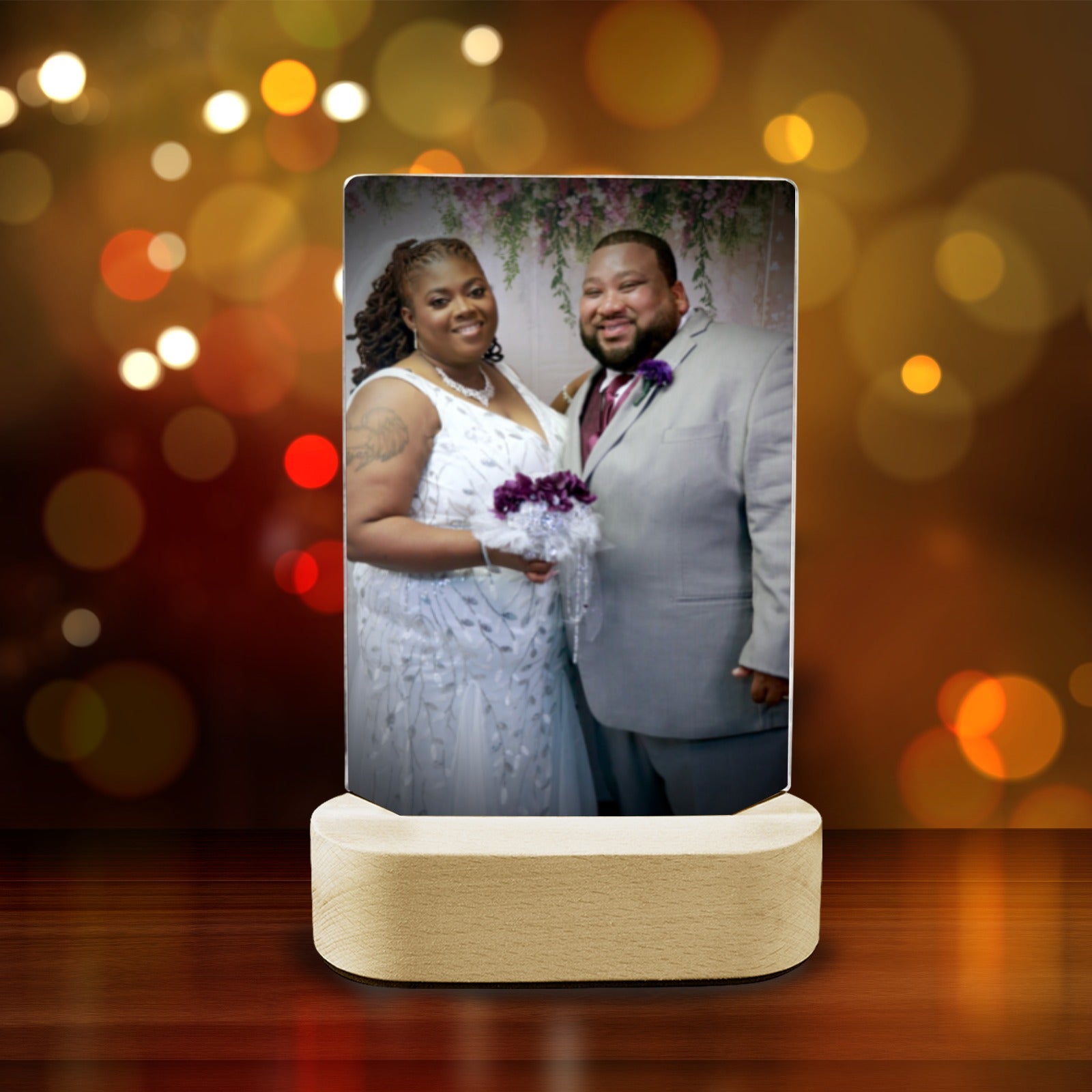 Acrylic Photo Display with Wooden Stand/Lighted Stand