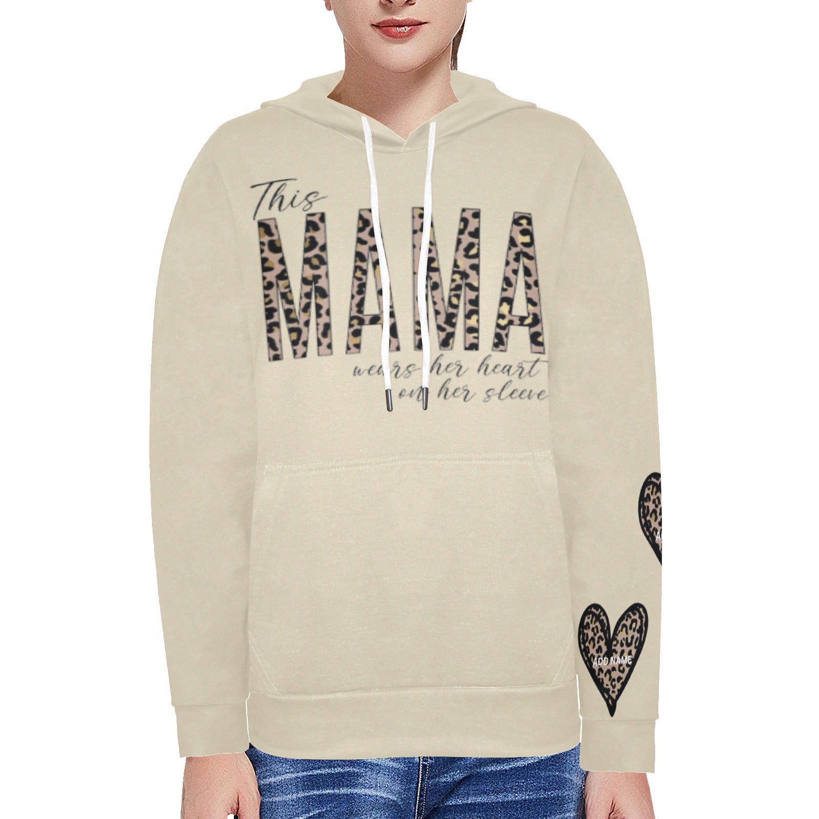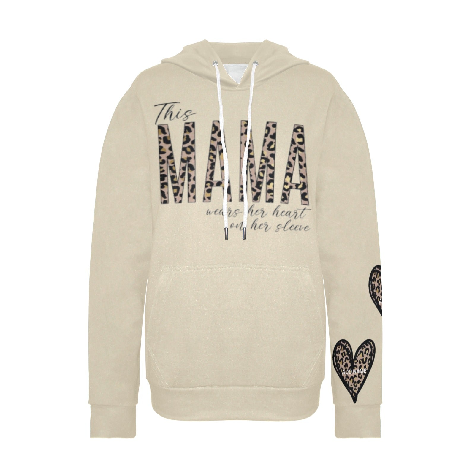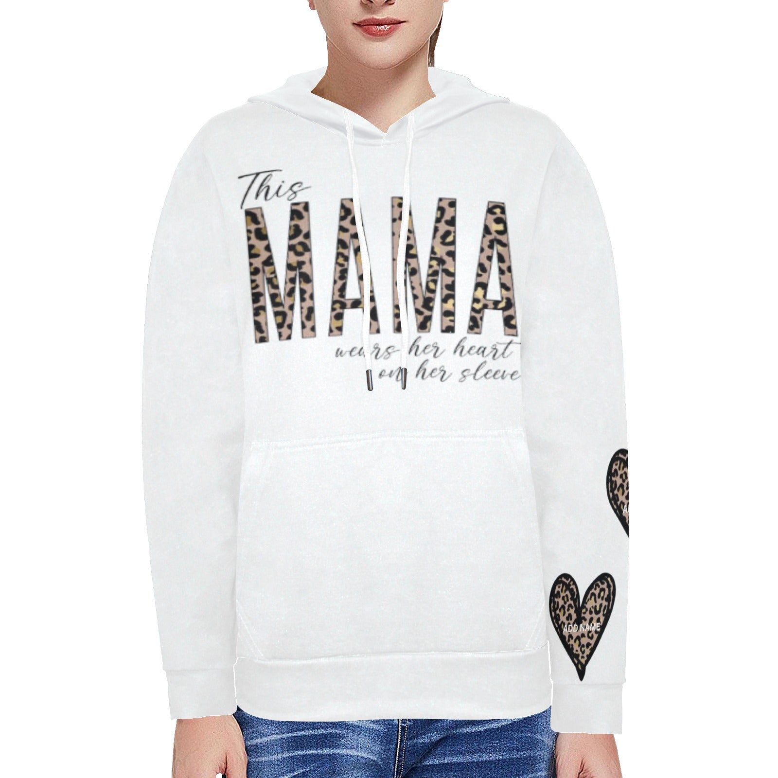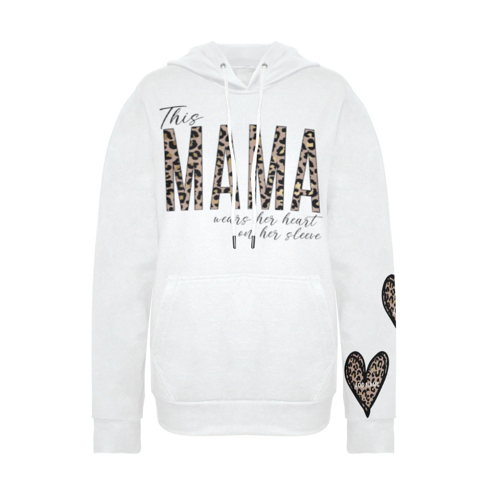 Wrap yourself in warmth, love, and a little bit of wild with our Heart on Her Sleeve “Mama” Hoodie. This cozy white pullover features bold leopard print “MAMA” lettering and the heartfelt phrase: “This Mama wears her heart on her sleeve.” True to its message, the sleeve is adorned with leopard-print hearts—perfect for customizing with names or simply showcasing the fierce love of motherhood.