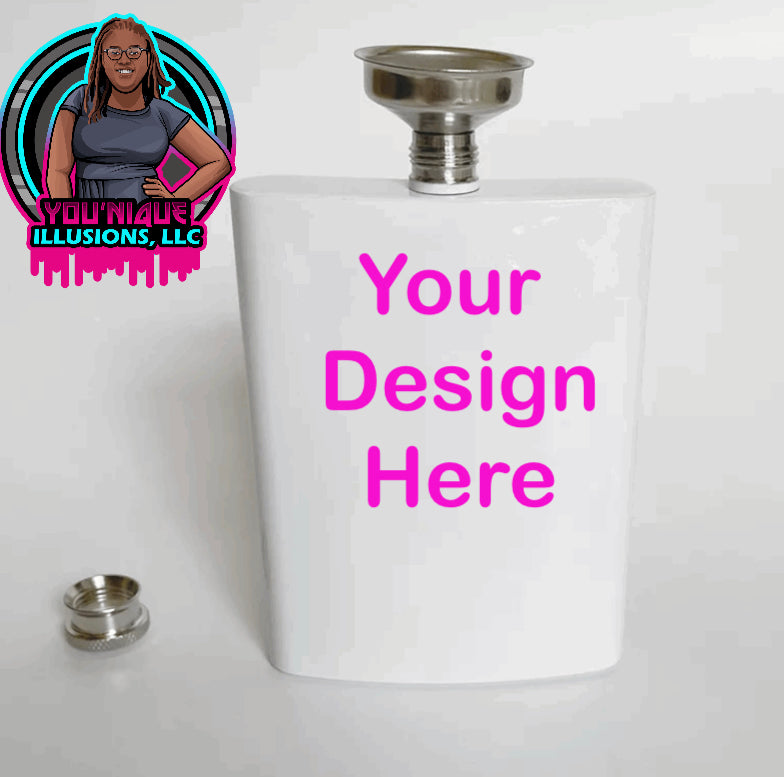 Well imagine the heads you’ll turn when you pull out your customized flask! Imagine your favorite team being on your flask while talking trash at a game. Or simply putting your name and picture on it. Design this 8oz flask and it’s all yours to stand out from the basic crowd.