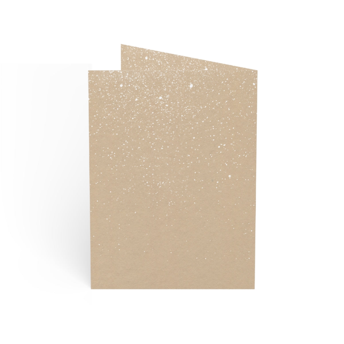 Handmade-feel holiday greeting cards that bring a warm, nostalgic moment to your season. The front features a kraft-paper look with a candy-cane frame, peppermint swirls, and a festive red bow — a cheerful window for your favorite photo or a handwritten note. Inside, a soft snowfall backdrop leaves space for a personal message or family update. These cards land like a little celebration in the mailbox and feel like a cozy kitchen-table holiday: bright colors, tactile paper, and the kind of design that makes people pause and smile.