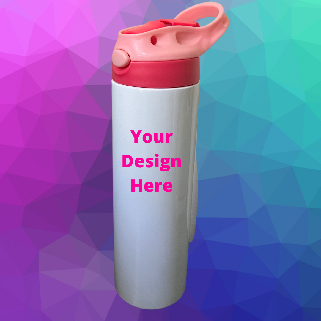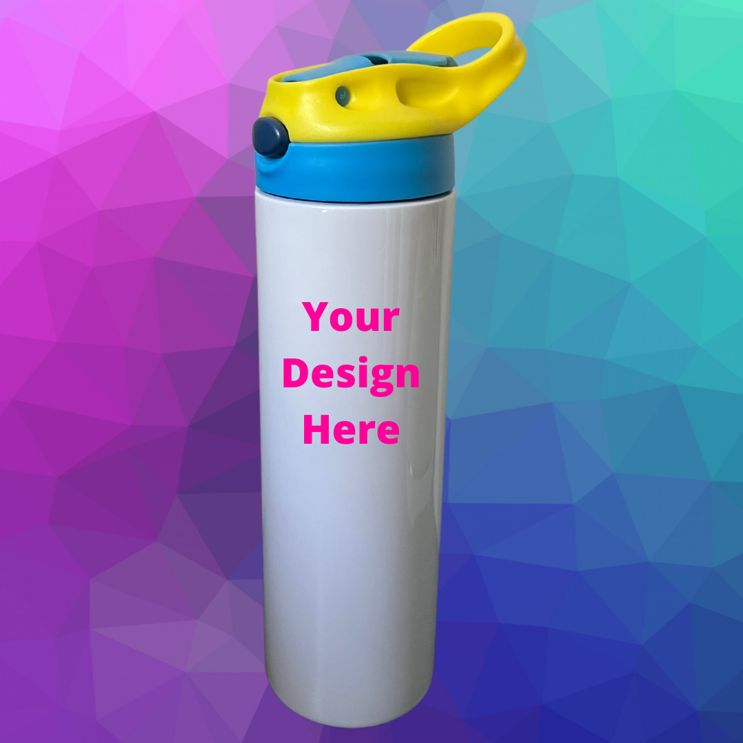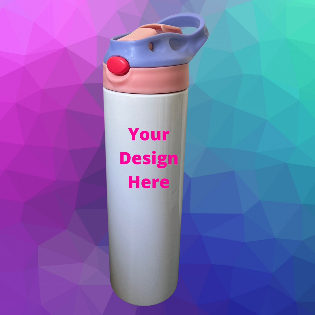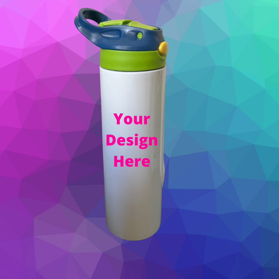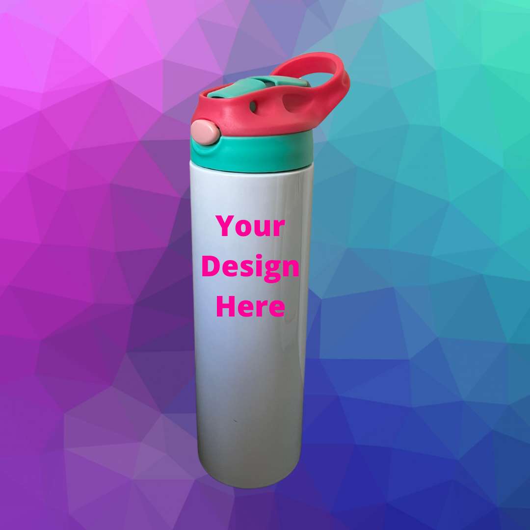 Customize your very own 20oz. water bottle by adding images, text and colors. With this option I bring your vision to reality. This is a great gift option for your kids during the summer heat! This water bottle will keep your drink warm/cold for an extended time frame, It comes with a lid and plastic straw.