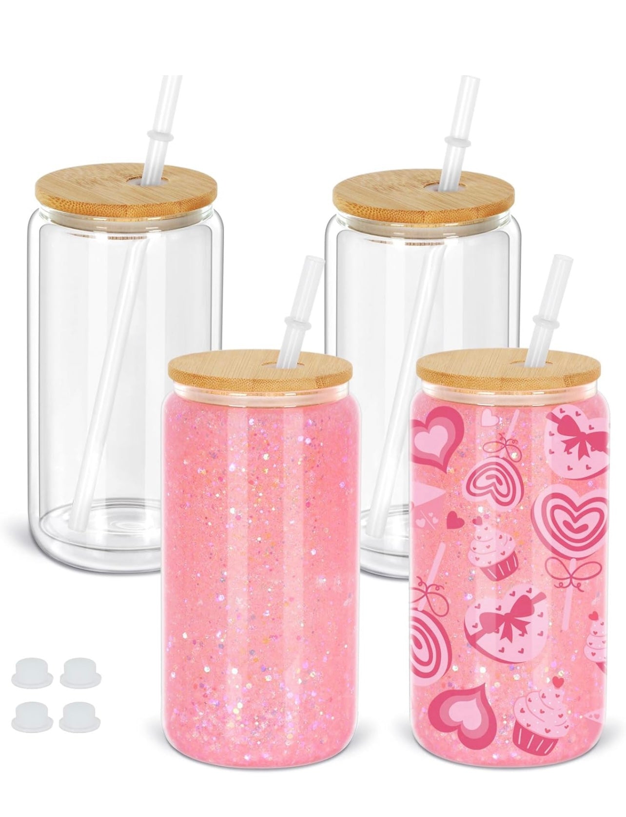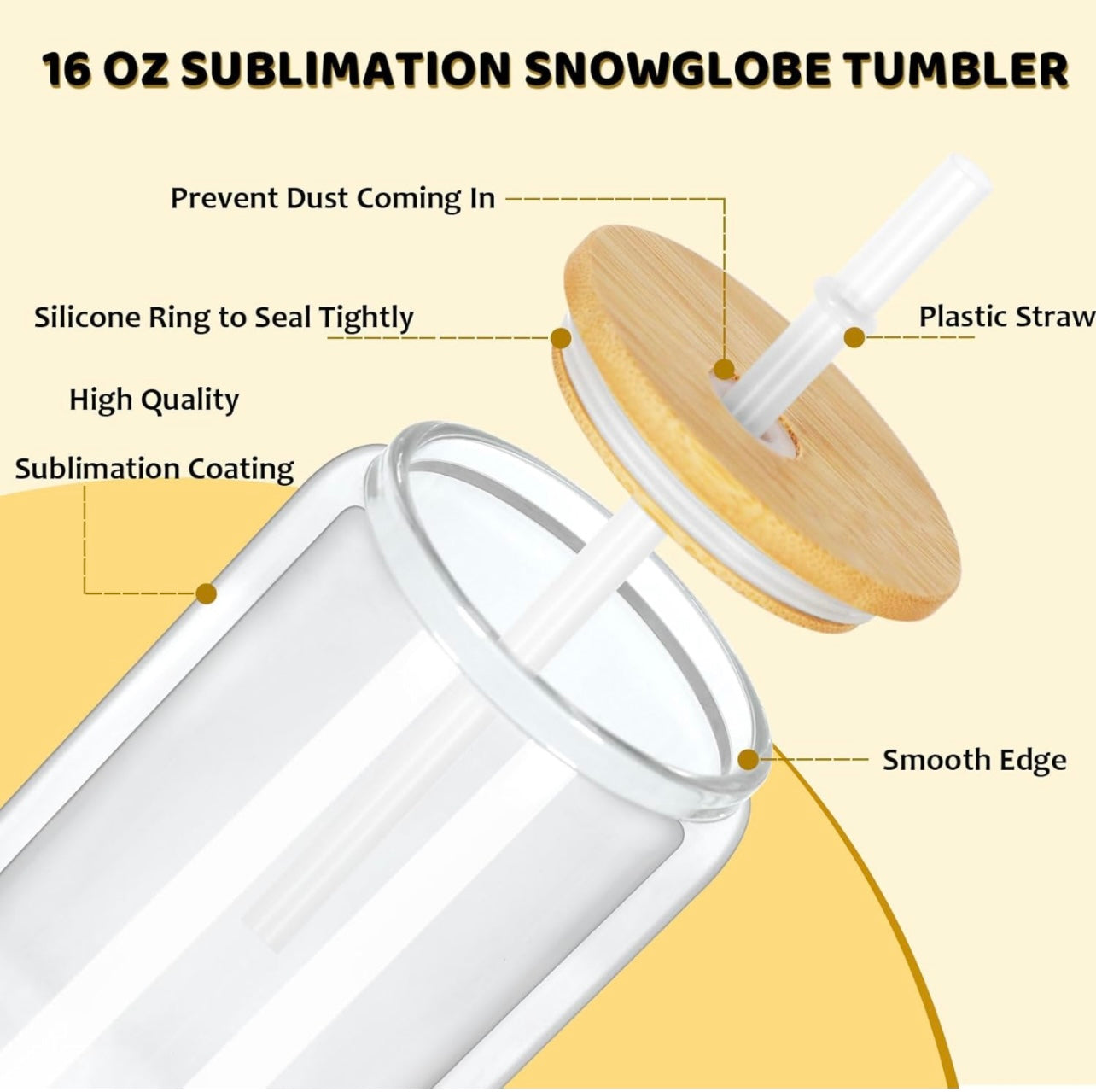 - ★PREMIUM MATERIAL - The snow globe tumbler glass is made of food-grade Borosilicate glass. It has a capacity of 16 ounces, 5.91inches long and 2.76inches wide, suitable for various types of sublimation heat press machine and ovens