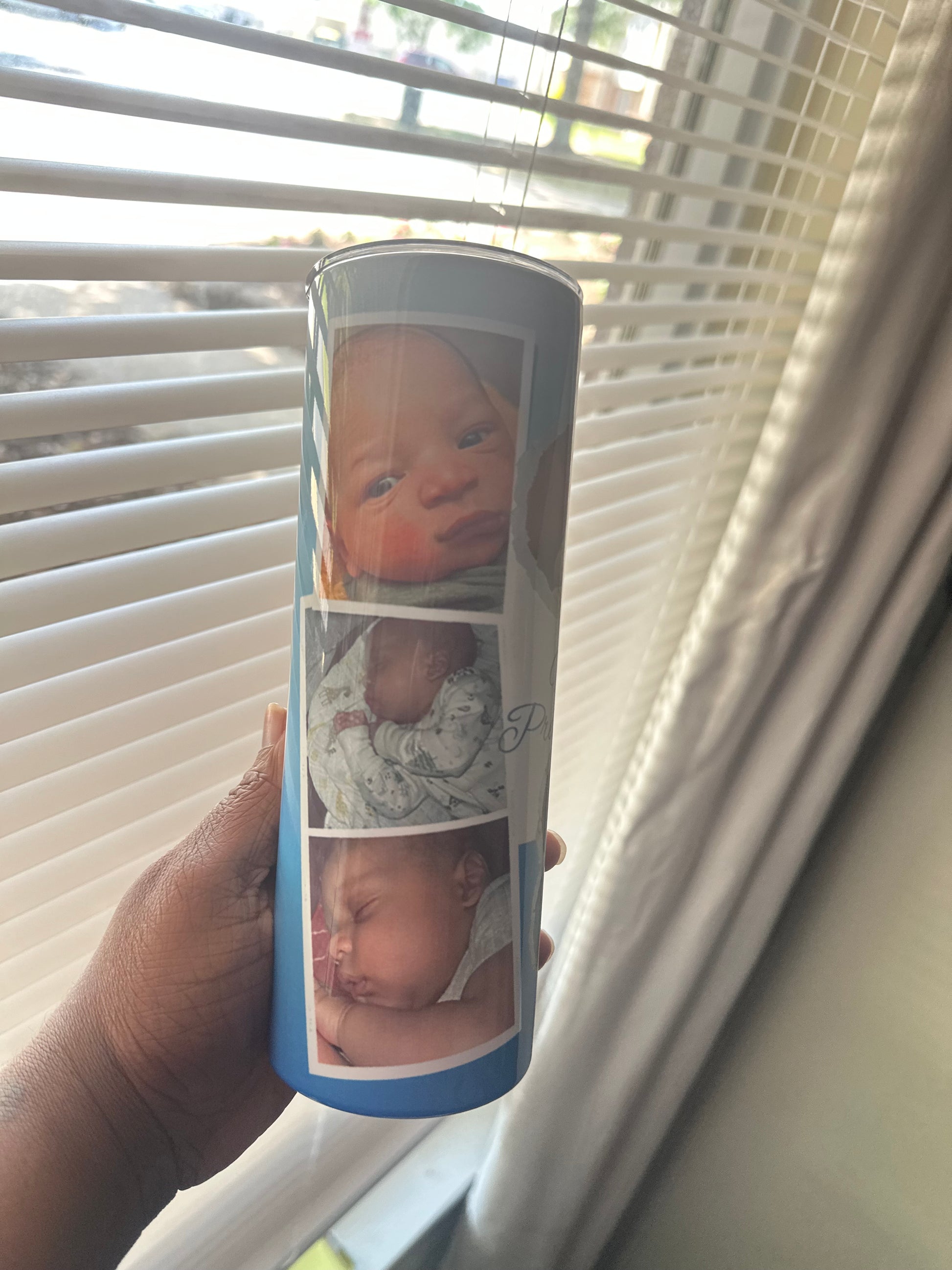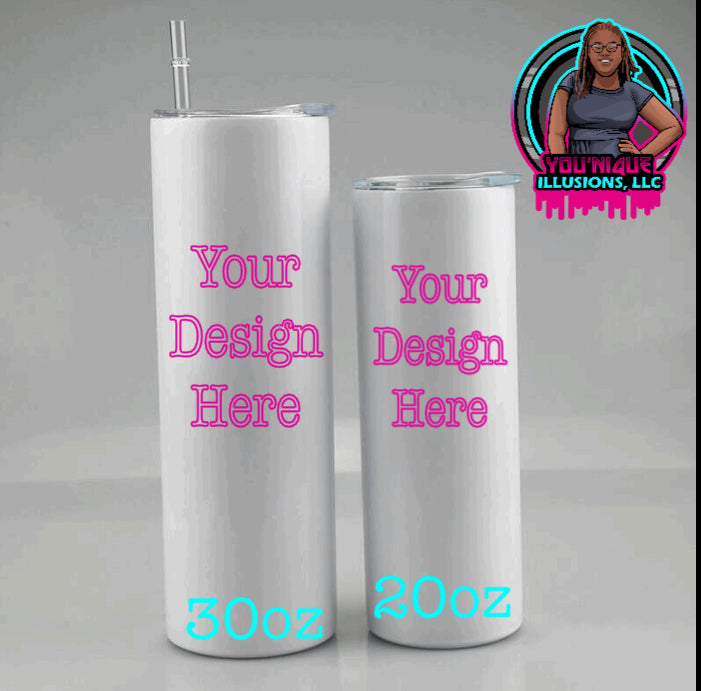 Customize your very own tumbler by adding images, text and colors. With this option I bring your vision to reality. This is a great gift option for your loved ones, coworkers and friends. This tumbler will keep your drink warm/cold for an extended time frame, It comes with a lid and plastic straw.