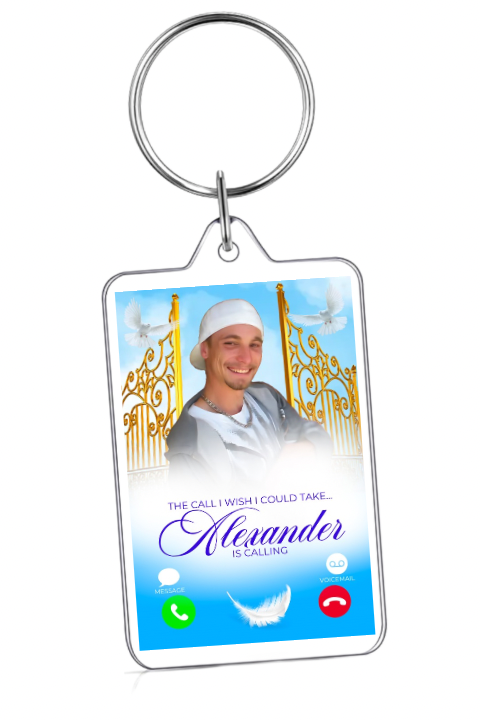 Honor loved ones with a personalized memorial keychain. Beautiful wearable art keepsake perfect for remembrance and sympathy gifts. Custom designs available.