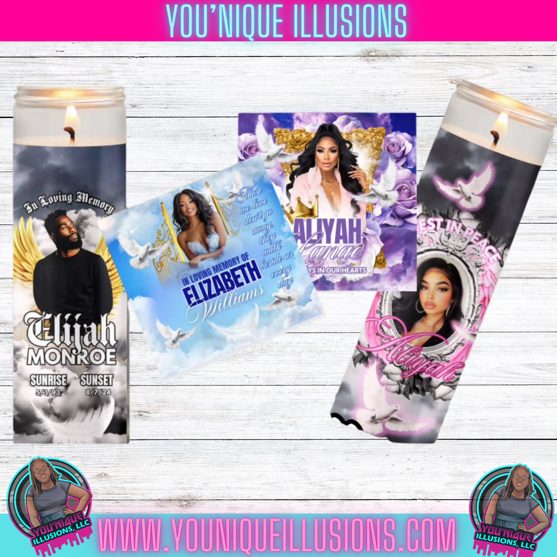 Crafted with love and care, our Memorial Pillar Candles are the perfect way to honor the memory of your loved ones. Measuring at 8 inches tall, these candles provide a warm and comforting glow, creating a serene atmosphere. Keep their memory alive with our beautifully designed pillar candle.