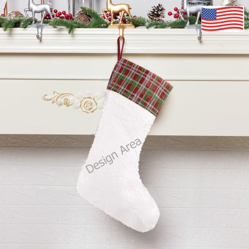 Add Christmas design element, festal greeting and photo to this stocking as a Christmas gift or hang it on the