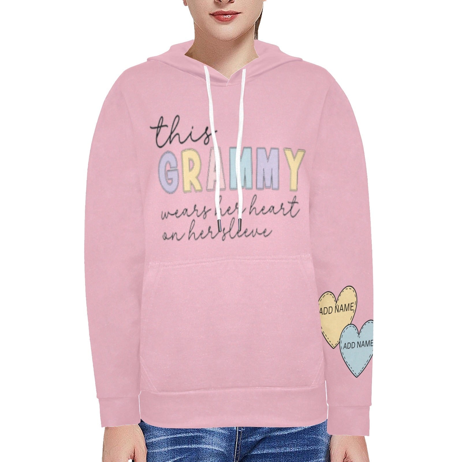 Our This Grammy Wears Her Heart On Her Sleeve hoodie is the perfect personalized gift for a proud grandmother. Featuring soft pastel lettering and custom name hearts on the sleeve, it’s a cozy reminder of the grandkids who mean the world to her. Perfect for birthdays, Mother’s Day, or just because—this hoodie is as warm and loving as Grammy herself!